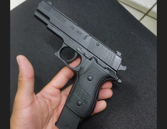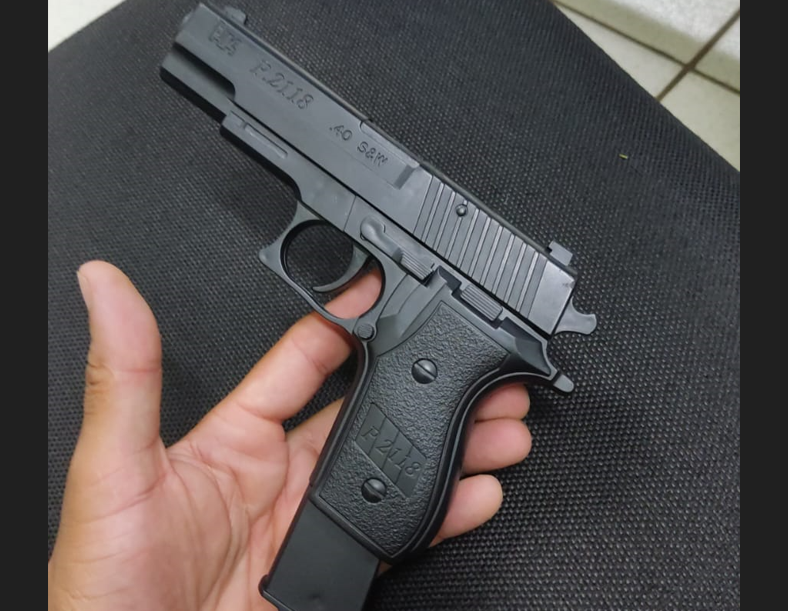 O policial identificou que a arma do bandido era uma réplica de pistola.