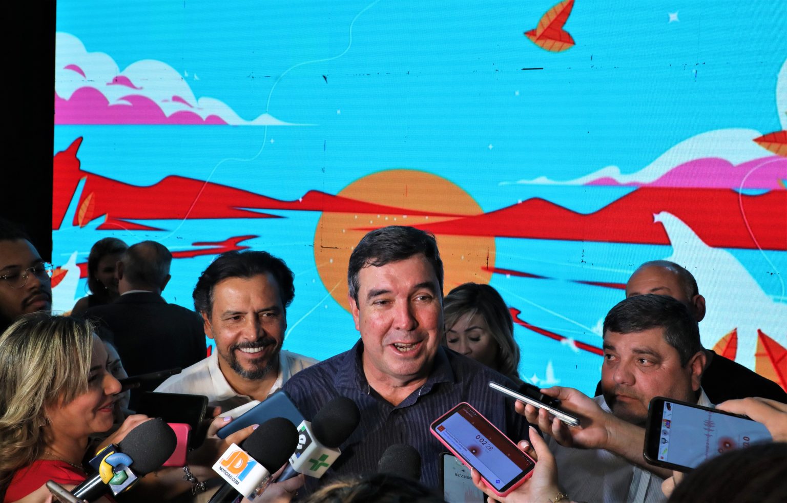 Evento de lançamento do FIB aconteceu no Teatro do Mundo, em Campo Grande, e reuniu diversas autoridades políticas (Foto: Saul Schramm)