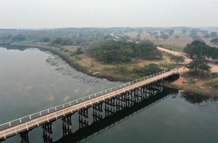 A ponte de 228 metros sobre o Rio Nabileque sofreu danos estruturais devido ao intenso movimento de caminhões e máquinas para as obras de construção de pontes e galerias na MS-243 em execução pelo Governo do Estado.