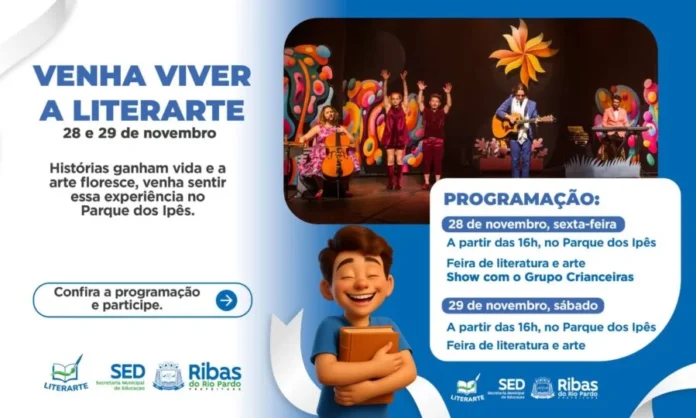 A Prefeitura de Ribas do Rio Pardo, por meio do Núcleo de Cultura, realiza nos dias 28 e 29 de novembro a Feira de Literatura e Arte – LITERARTE 2025, no Parque dos Ipês. O evento é um grande projeto interdisciplinar que reúne produções literárias, artísticas e culturais desenvolvidas por estudantes das 16 escolas do município, envolvendo a Rede Municipal, Rede Estadual e instituições parceiras.