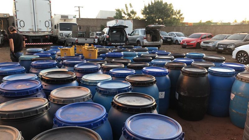Maconha armazenada em barris é apreendida. (Foto/Divulgação)