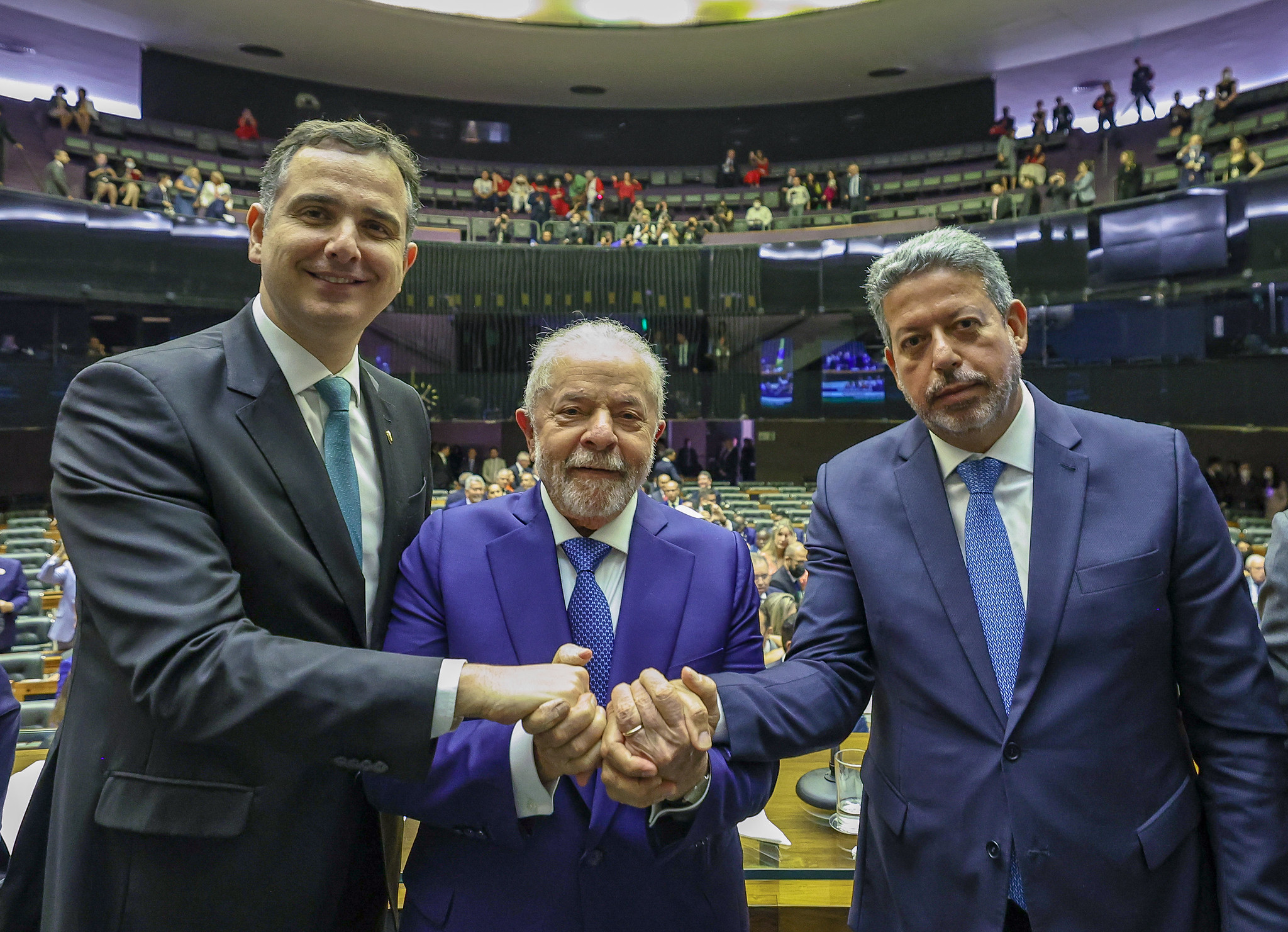 Presidente Lula, ao do presidente do Senado, Rodrigo Pacheco, e do presidente da Câmara, Arthur Lira (Foto: Ricardo Stuckert/PR)