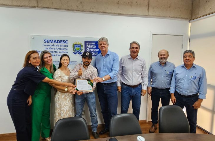O certificado foi entregue pelo secretário Jaime Verruck e pelo secretário-executivo de Desenvolvimento Econômico Sustentável da Semadesc, Rogério Beretta, ao prefeito de Tacuru, Rogério de Souza Torquetti. O encontro ainda contou com a presença do coordenador de Pecuária, Marivaldo Miranda, e o gestor do programa, Rubens Rondon.