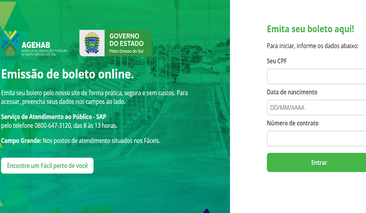A tecnologia em tempos de pandemia tem facilitado a vida das pessoas e por este motivo a Agência de Habitação Popular de Mato Grosso do Sul (Agehab), reforça o acesso ao boleto habitacional online pelo site da agência. O beneficiário precisa apenas do número do CPF, data de nascimento e número de contrato.