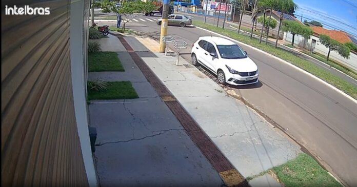 Mais um acidente de trânsito foi registrado na conturbada rotatória da Rua Hiroshima e Avenida Aracruz, no bairro Carandá Bosque, em Campo Grande. Imagens de uma câmera de videomonitoramento registraram toda a dinâmica.