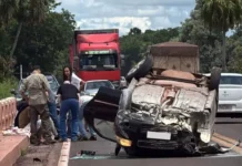 O sinistro envolveu um veículo de passeio e um caminhão-baú. Conforme consta, o primeiro seguia pela avenida quando, ao atravessar a rotatória, foi atingido na lateral pelo segundo, que invadiu a preferencial.