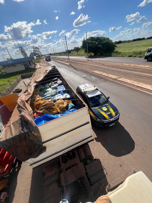 Na abordagem, os ocupantes disseram estar transportando melancias para São Paulo (SP). No ato, foi solicitado ao condutor que acomodasse a carga para evitar acidente.