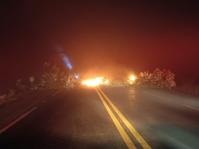 Os manifestantes bloquearam a rodovia utilizando galhos de árvores e pneus, em dois pontos, sendo um antes da entrada ao distrito de Capão Seco e outro após, obstruindo completamente a circulação de veículos nos dois sentidos da rodovia.