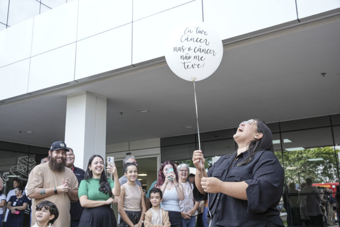 Antes de balões brancos ganharem o céu, Madu compartilhou uma reflexão que emocionou a equipe assistencial: “Eu não consigo dizer quanto tempo eu passei aqui na frente e eu idealizava, eu olhava, eu tirava fotos todas as vezes que eu vinha. Todas as vezes. Eu tenho milhares de fotos no meu celular. Eu queria dizer que eu tô tocando esse sino por mim, por todas as pessoas que eu perdi durante esse percurso, porque eu tive muitos amigos e família. Quando eu achei que eu não podia, minha melhor amiga, minha mãe, meus tios, meu pai, eles estavam segurando a minha mão por esse processo. E hoje eu toco esse sino para, de alguma forma, dizer para mim mesma e para todo mundo que tudo passa.”
