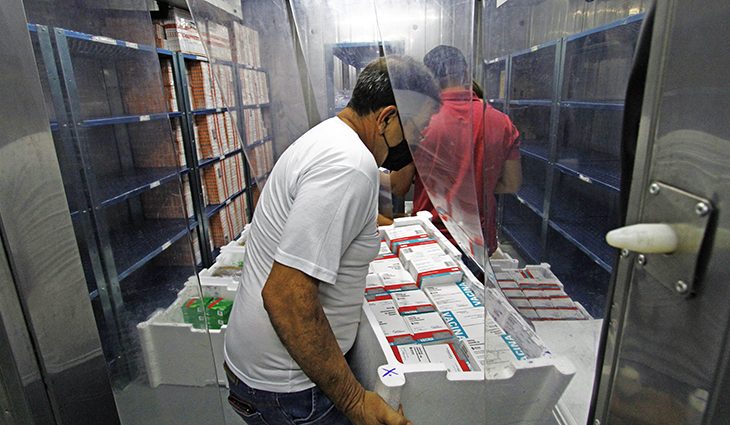 As 56.460 doses se juntam com as 76.050 doses de Pfizer que chegaram nessa semana somando 132.510.
