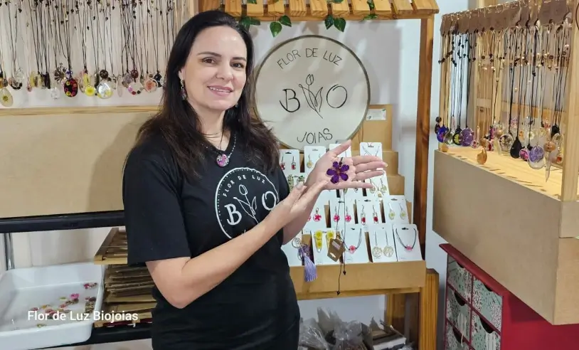 Como uma instituição especialista em pequenos negócios, o Sebrae/MS oferece suporte para quem já empreende ou deseja começar uma empresa com orientações e auxílio nos processos, incluindo a formalização. Foi com esse apoio que Beatriz Corregaro de Almeida se formalizou como MEI, em fevereiro deste ano, e iniciou a Flor de Luz Biojóias, onde comercializa peças artesanais feitas a partir de elementos naturais, como flores e folhas.