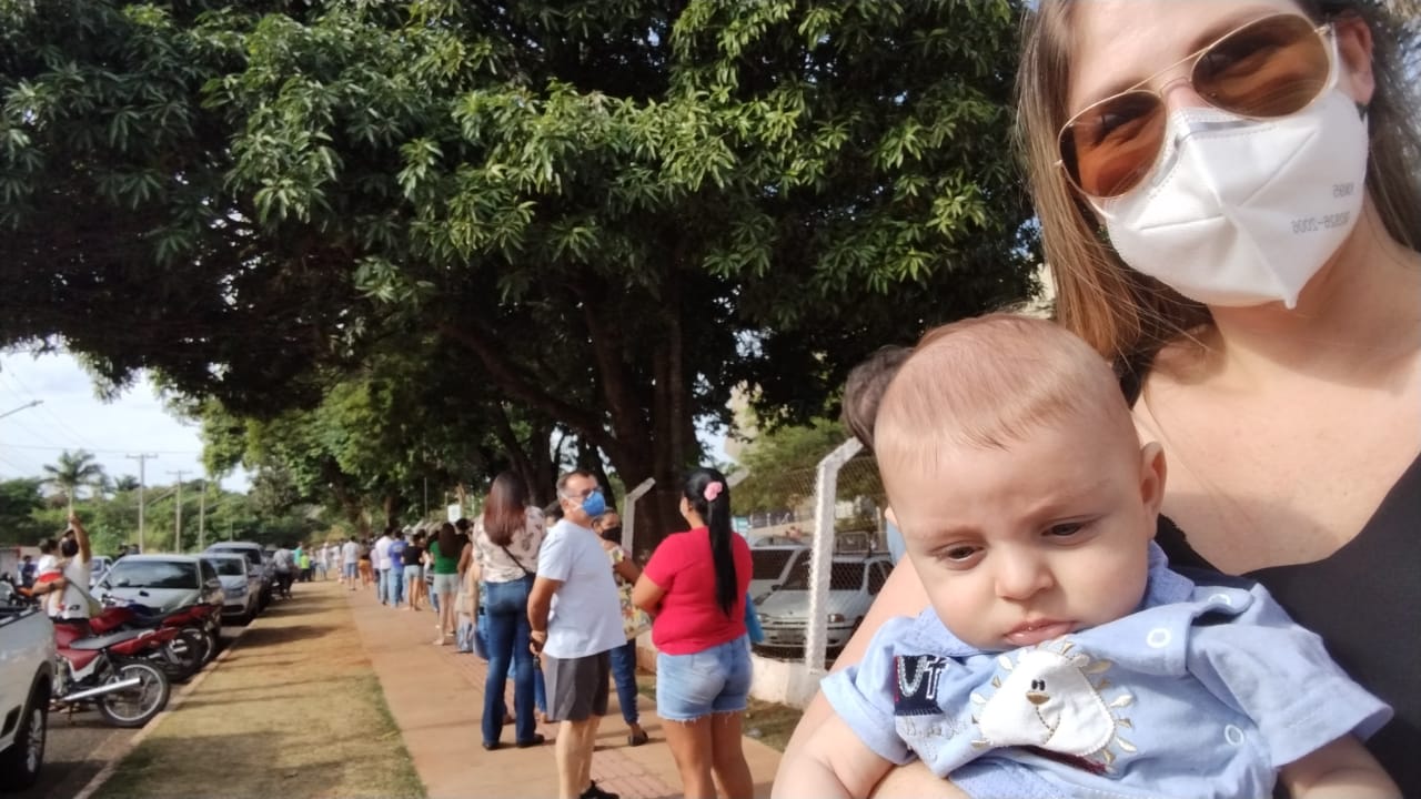Doses da vacina da Pfizer estão sendo aplicadas em lactantes com 30 anos ou mais, neste domingo (6), no Guanandizão, em Campo Grande. Mesmo com apenas um local para imunização, com longas filas, as mamães comemoraram o recebimento da primeira dose da vacina contra covid-19, que era tão aguardada.