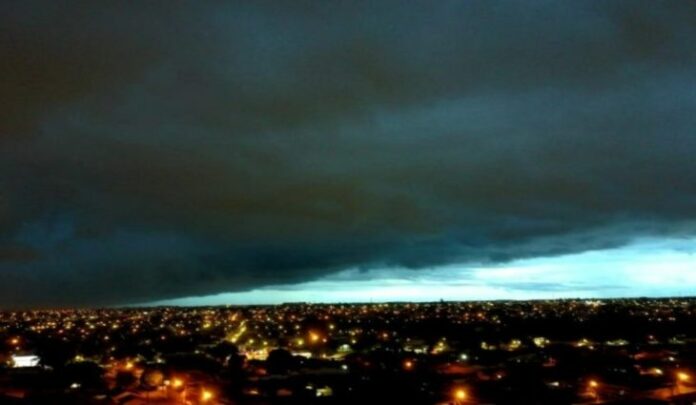 No começo do dia em algumas áreas o sol até aparece entre muitas nuvens dando a sensação de tempo abafado, mas haverá aumento de nebulosidade ao longo do dia e a chuva pode vir acompanhada de raios e ventos fortes.