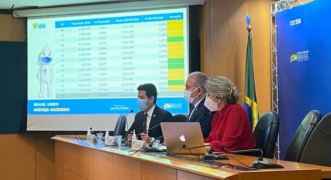 Na entrevista coletiva foi explicada a distribuição de vacinas e o ministério deixou claro que a prioridade é terminar a imunização de adultos para depois vacinar adolescentes. “As doses não são para adolescentes. Como vou vacinar em um estado adolescentes e em outros estamos nos 30 anos? Temos de fazer a vacinação de maneira equânime”, explicou o ministro.