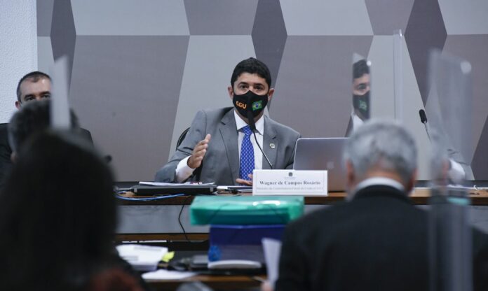 Comissão Parlamentar de Inquérito da Pandemia (CPIPANDEMIA) realiza oitiva do ministro da Controladoria-Geral da União (CGU) que deverá falar sobre desvio de recursos liberados pela União para estados e municípios e sobre uma suposta omissão da CGU em negociações irregulares no Ministério da Saúde. À mesa, ministro da Controladoria-Geral da União (CGU), Wagner Rosário. Foto: Roque de Sá/Agência Senado