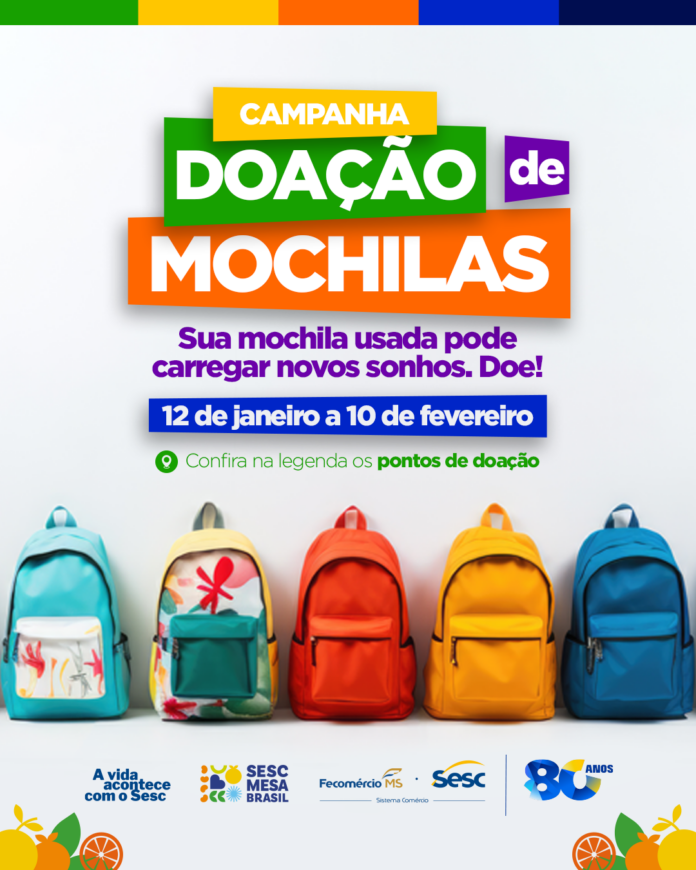 Uma mochila que já cumpriu sua função na rotina escolar pode ganhar um novo significado e ajudar a transformar realidades em Mato Grosso do Sul. Com esse propósito, o Sesc MS, por meio do projeto Sesc Mesa Brasil, lançou uma campanha de arrecadação de mochilas usadas em bom estado, mobilizando a comunidade para um gesto simples, mas de forte impacto social.