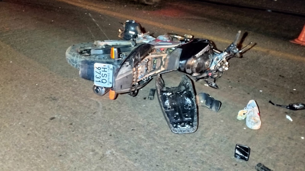 Motociclista, ainda não identificado, ficou ferido na noite desta terça-feira (7), após bater em uma carreta entre o Residencial Bonanza e o armazém de mesmo nome, na BR-463, em Dourados.