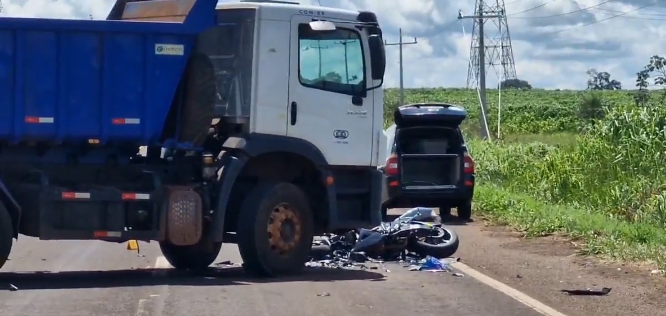 Motociclista morre ao bater em caminhão basculante na MS-080