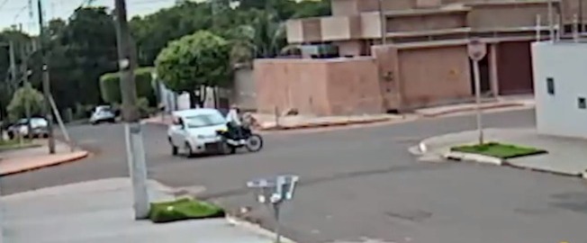 As imagens de uma câmera de segurança de um imóvel próximo mostram toda a dinâmica. É possível ver o momento em que o veículo avança o cruzamento ignorando a motocicleta que estava na preferencial.