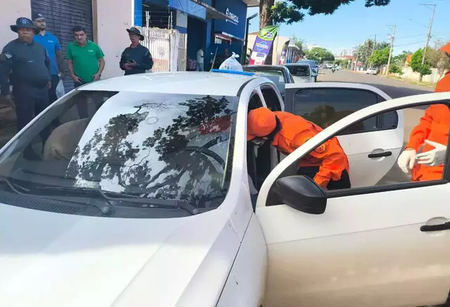 Uma viatura da Polícia Militar da Agems (Agência Estadual de Regulação) estava abastecendo e a equipe fez a retirada do homem do carro. Ele tinha problemas de obesidade, pesando mais de 100 quilos, o que dificultou o trabalho.