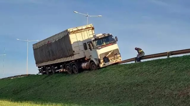 Uma carreta bateu contra o guard-rail da rodovia estadual MS-306, na entrada de Chapadão do Sul, e por muito pouco não acabou capotando em um barranco existente às margens da estrada.