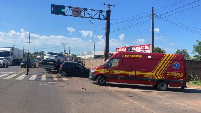A apuração indica que o condutor de um veículo, modelo VW Fox, seguia pela rodovia sentido à saída para Cuiabá (MT) quando fez uma conversão proibida de acesso à avenida.