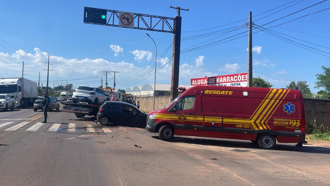 Um acidente de trânsito deixou dois veículos danificados na manhã desse domingo (07), em Campo Grande. Não houve vítimas graves, segundo a Polícia Rodoviária Federal (PRF).