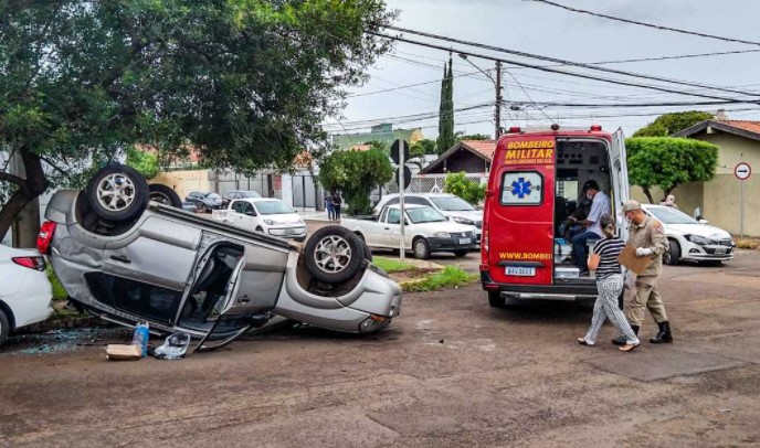 Um veículo Polo invadiu a preferencial ruas Alagoas e Eduardo Santos Pereira, na Capital, e causou o capotamento de um Hyundai Tucson. Um terceiro carro que estava estacionado também foi atingido. O acidente de trânsito aconteceu a pouco, nesta sexta-feira (29).