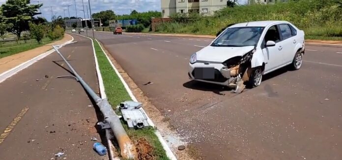 Um motorista de 56 anos acabou batendo o veículo que conduzia contra um poste de iluminação pública na Avenida Fábio Zahran, em Campo Grande, na manhã dessa quinta-feira (14).
