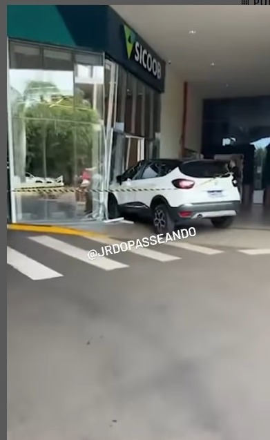 Um veículo, modelo Renault Captur, destruiu a vidraça de uma agência bancária localizada no pátio de um centro comercial da Avenida Tamandaré, em Campo Grande, na tarde desta terça-feira (19).