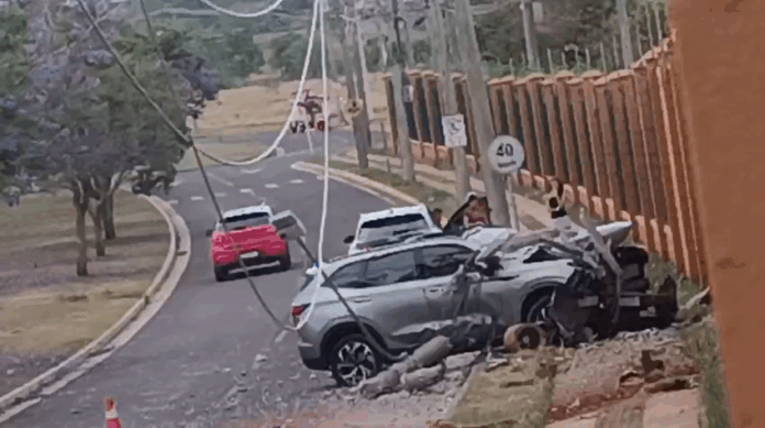 Um motorista perdeu o controle do veículo e colidiu contra um poste de iluminação pública na tarde deste sábado (11), em uma das ruas de acesso aos condomínios Alphaville, em Campo Grande. A força do impacto destruiu completamente a estrutura, espalhando partes do poste pela via.