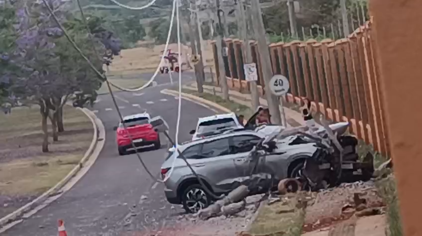 Imagens registradas no local mostram o poste quebrado em vários pedaços e a dianteira do carro totalmente destruída. Moradores e motoristas que passavam pela região gravaram o cenário logo após o acidente.