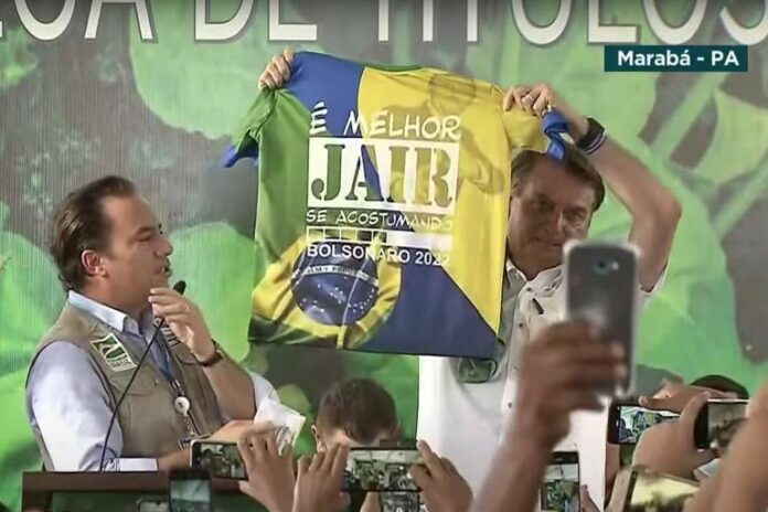 O Ministério Público Eleitoral apresentou uma ação ao Tribunal Superior Eleitoral (TSE) na qual pede multa ao presidente Jair Bolsonaro por propaganda eleitoral antecipada. Nesta sexta-feira (18), durante evento de entrega de títulos de propriedade rural em Marabá (PA) transmitido ao vivo pela emissora oficial TV Brasil, Bolsonaro exibiu uma camiseta com a mensagem “É melhor Jair se acostumando. Bolsonaro 2022”.