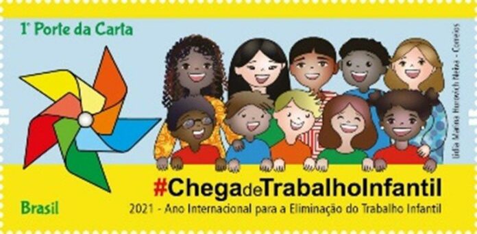 Em uma ação conjunta, o Ministério Público do Trabalho (MPT), os Correios e a Organização Internacional do Trabalho (OIT) lançam um selo comemorativo para marcar o Ano Internacional para Eliminação do Trabalho Infantil. O Ano Internacional foi aprovado por unanimidade pela Assembleia Geral da ONU em 2019, tendo a OIT sido escolhida como a facilitadora de sua organização e da implementação das respectivas ações. Seu principal propósito é instar os governos a fazerem o que for necessário para atingir a Meta 8.7 dos Objetivos de Desenvolvimento Sustentável da ONU (ODS).