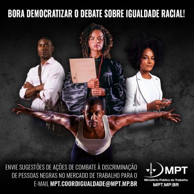 Com o objetivo de receber subsídios para desenvolver ações de promoção de igualdade de oportunidades e de combate à discriminação de pessoas negras no mercado de trabalho, o Ministério Público do Trabalho (MPT) lançou, nesta semana, edital de chamada para reunião pública virtual que será realizada em 27 de novembro, das 10h às 18h. Convidados e interessados em se manifestar no encontro virtual deverão se inscrever até o dia 30 de outubro por meio do endereço [email protected]