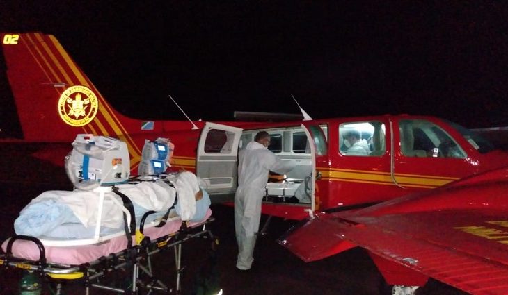 A aeronave Bimotor Baron do Grupamento de Operações Aéreas do Corpo de Bombeiros de Mato Grosso do Sul está fazendo este transporte de passageiros de Rondônia para Campo Grande. Ela trouxe um paciente na última madrugada e já está escalada para trazer outro (paciente) nesta segunda-feira.