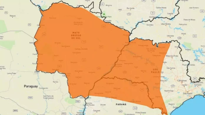 O Inmet (Instituto Nacional de Meteorologia) colocou novamente quase todo o Mato Grosso do Sul sob alerta de tempestade, que prevê ventos de até 100 km por hora. O clima em perigos iminente, se ainda não ‘virou’, pode ficar tenso ainda nesta segunda-feira (19), seguindo com o alerta especifica indo até esta terça-feira (20).