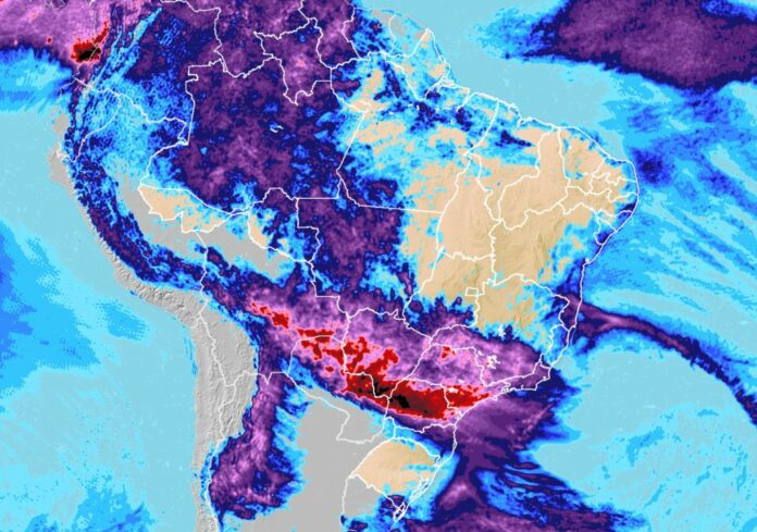 Pelo menos até às 23h59min de terça (27) são esperadas tempestades com 50 a 100 mm/dia de chuva, acompanhada por ventos intensos de 60 a 100 km/h e ocorrências de queda de granizo, corte de energia elétrica, estragos em plantações, queda de árvores e de alagamentos.