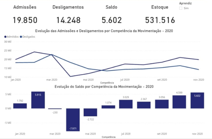 Mato Grosso do Sul gerou 5.602 novos empregos com carteira assinada no mês de novembro, revelam os dados do Cagec (Cadastro Geral de Empregados e Desempregados), órgão vinculado ao Ministério da Economia. É o sexto mês consecutivo que o Estado tem saldo positivo e crescente, indicando que a economia já se recupera da crise causada pela pandemia Covid-19.