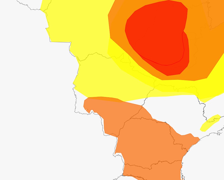 No caso específico da Onda de Calor, o alerta de Perigo Potencial segue até às 14 horas de terça-feira (13). O Inmet diz que há leve risco à saúde, com a temperatura fiicando até 5ºC acima da média por período de 02 até 03 dias. Esão neste alerta as cidades de Sonora, Pedro Gomes, Paranaíba, Paraíso das Águas, Inocência, Figueirão, Coxim, Costa Rica, Chapadão do Sul, Cassilândia, Aparecida do Taboado e Alcinópolis.