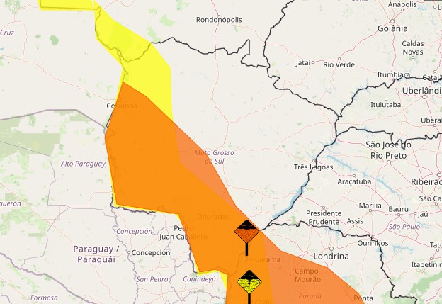 O Instituto Nacional de Meteorologia (Inmet) emitiu dois alertas de tempestade para Mato Grosso do Sul neste fim de semana, prevendo chuvas intensas e grande acumulado de precipitação em várias regiões do Estado. Os avisos valem entre este sábado (25) e o domingo (26), com maior impacto nas áreas sul, sudoeste e do Pantanal.