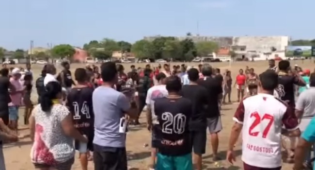 As cenas mostram ainda que há crianças tentando se proteger no meio da confusão. O locutor do jogo chegou a pedir calma para os torcedores. Em seguida, dois policiais militares que faziam a segurança do local conseguiram separar os envolvidos.
