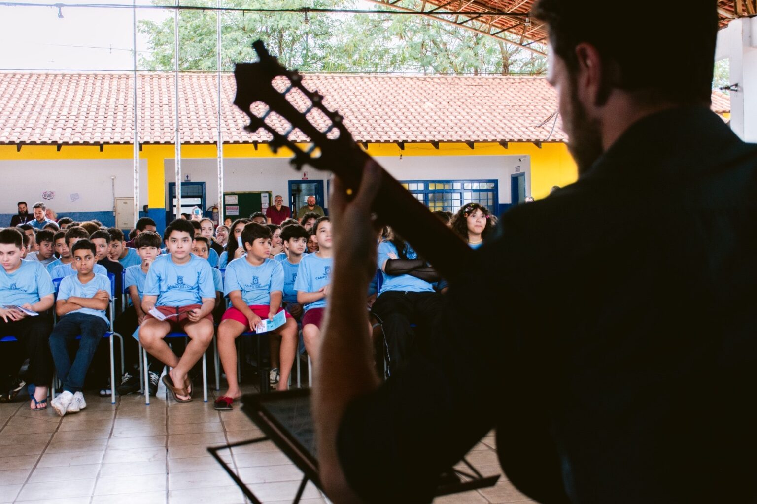 O projeto “Música Erudita nas Escolas” já percorreu nove municípios e realizou mais de 20 apresentações, com investimento da Política Nacional Aldir Blanc (PNAB), por meio do Ministério da Cultura, Fundac, Prefeitura de Campo Grande e apoio da Secretaria Municipal de Educação (SEMED).