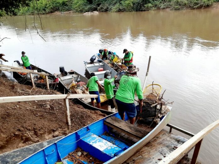Mutirão faz limpeza do rio Aquidauana e retira cinco embarcações lotadas de lixo