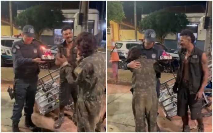 Comovido, o policial militar conversou com a sua equipe e decidiram comprar o bolo e levar até ela para cantar os ‘parabéns’. “Nós também temos que trabalhar com a empatia. […] Ela ficou muito emocionada e foi algo muito gratificante para nós”, disse o cabo Saldanha. O vídeo do aniversário é do dia 13 de junho e viralizou nos últimos dias nas redes sociais.