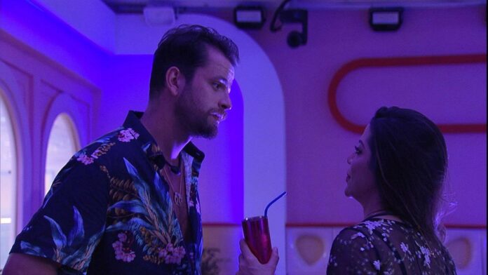 “Eu já queria te beijar antes de entrar aqui. É verdade. Tu é uma das mulheres mais desejadas do Brasil. Estou falando”, afirma o paranaense. “Que conversa… Vai, continua”, diz Laís. Gustavo segue: “Aqui, um beijo, um relacionamento, envolve outras coisas. Eu entrei aqui para fazer um jogo arriscado.”