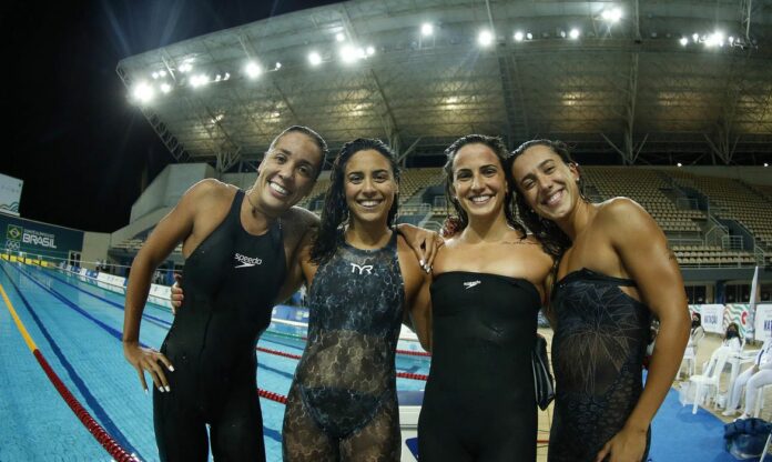 A delegação brasileira de natação na Olimpíada de Tóquio chegou nesta segunda-feira (14) a um total de 26 atletas, um recorde de participação – excluindo a última edição, quando o Brasil era o país sede – após a classificação do revezamento 4×200 metros livre feminino. A equipe nacional, formada por Larissa Oliveira, Nathalia Almeida, Gabrielle Roncatto e Aline Rodrigues, herdou a vaga após a desistência da Grã-Bretanha, campeã europeia. O maior número de nadadores brasileiros em Jogos Olímpicos foi registrado em 2008, na Olimpíada de Pequim (China).