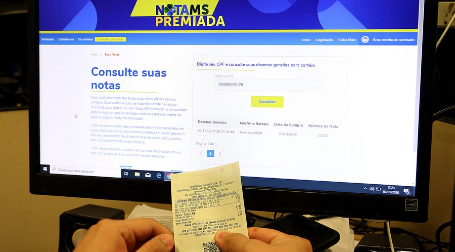 Os consumidores que realizaram suas compras no mês de novembro de 2020 e incluíram o Cadastro de Pessoa Física (CPF) na nota fiscal já podem conferir o resultado do quarto sorteio do Nota MS Premiada acessando o site do programa estadual e digitar o CPF.