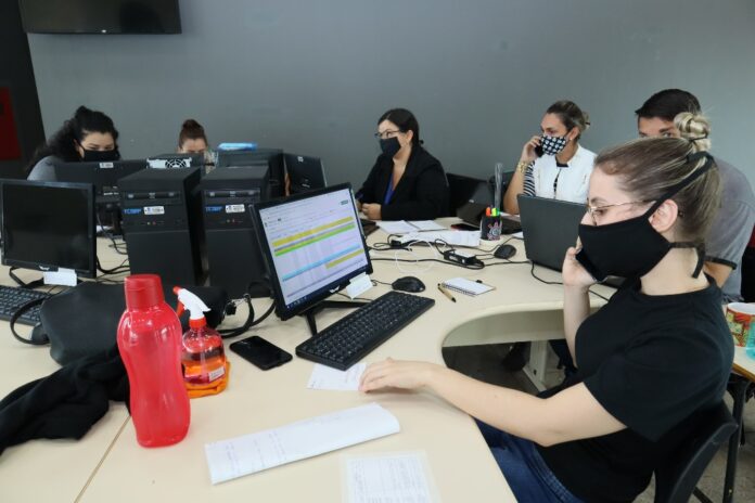Está em funcionamento numa ampla sala na Secretaria de Desenvolvimento Econômico o chamado “Núcleo Covid” que atua no monitoramento e vigilância das mais de 1200 pessoas infectadas com o Coronavirus em Dourados.