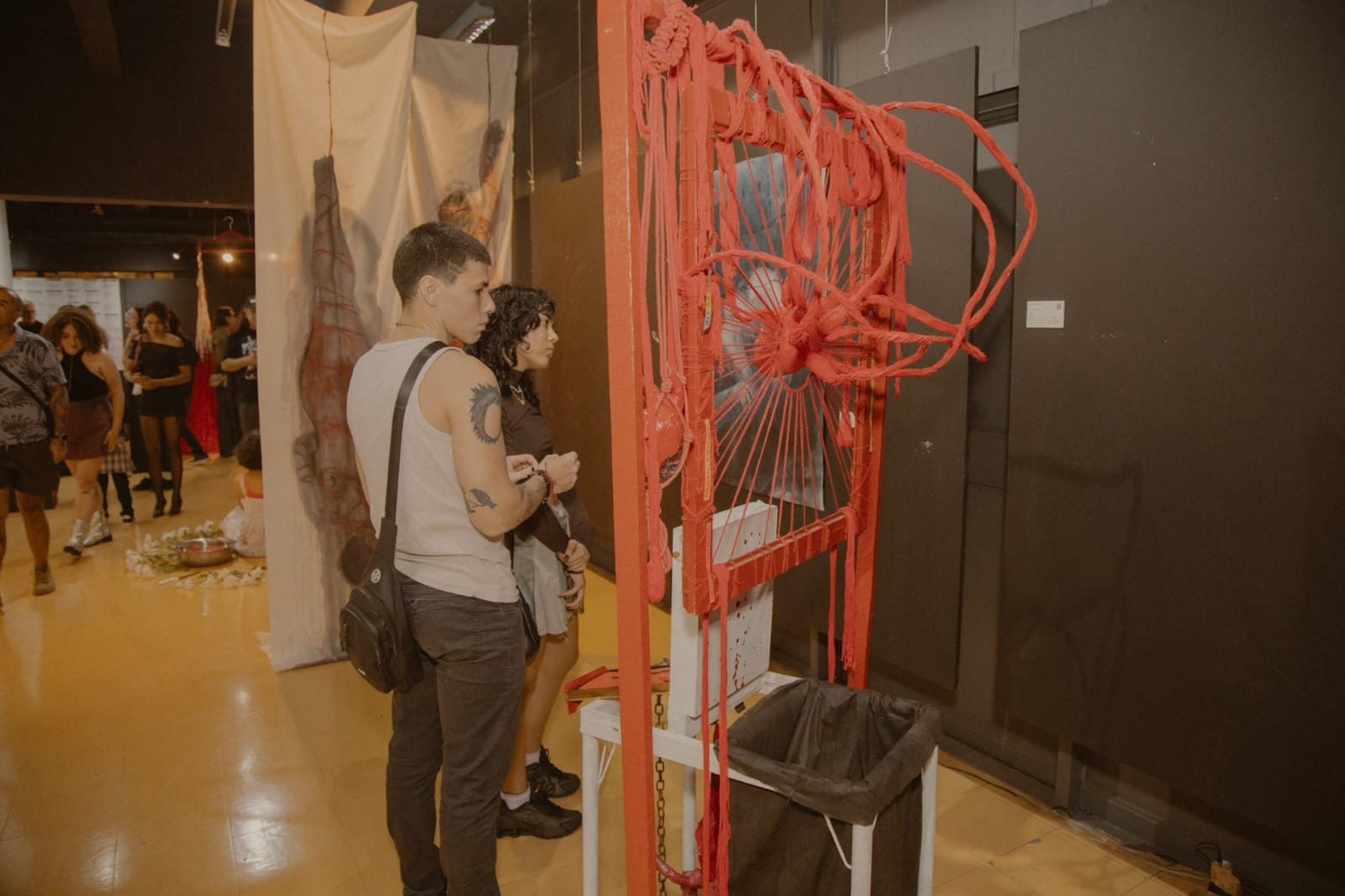 Nesta terceira etapa, a exposição incorpora também o Banco Vermelho, iniciativa vinculada ao enfrentamento ao feminicídio, que passa a integrar o espaço expositivo como elemento de memória, denúncia e conscientização. A presença do banco amplia o diálogo da mostra com a cidade e reforça o compromisso do projeto com ações que tensionam a violência de gênero para além do campo simbólico.